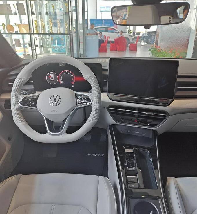 进入车内,新款凌渡L的内饰也进行了大升级。取消了双联屏设计,取而代之的是环抱式的中控台,配备了12.9英寸悬浮式中控大屏和10.25英寸矩形全液晶仪表屏。这套车机系统搭载了高通8155芯片,并配备了最新的IQ.智慧车联系统,支持文心大语言模型和科大讯飞语音系统。这意味着,新款凌渡L在智能交互方面将会有更好的表现。同时,新车还换装了全新三幅式多功能方向盘,GTS车型上还加入了红色“GTS”标识,副仪表台上配备了手机无线充电面板和拨片式数字换挡机构,整体质感和科技感都有了很大的提升。